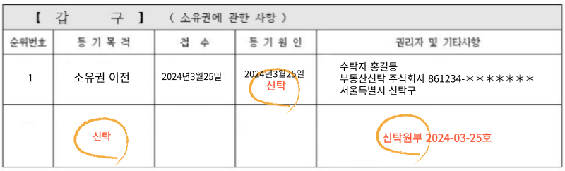 ✔ 갑구 '신탁'