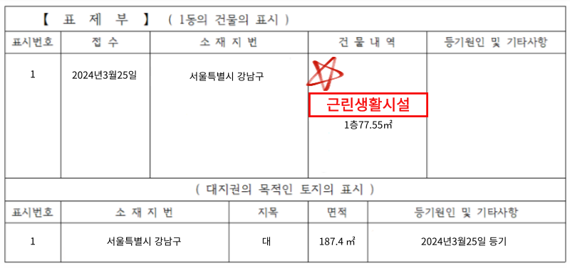 ✔ 표제부 '근린생활시설'