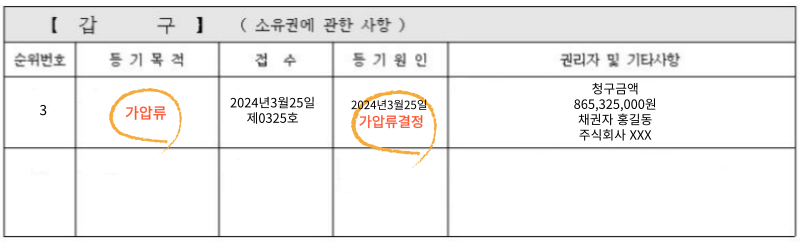 ✔ 갑구 '압류 / 가압류'