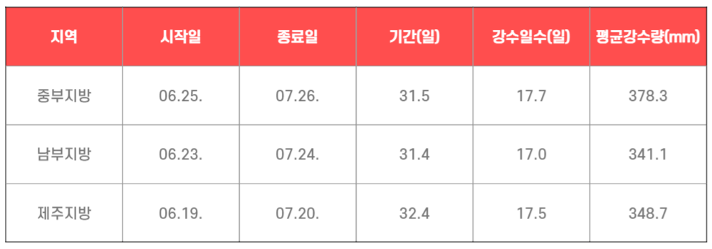 ✅ 중부지방 장마기간