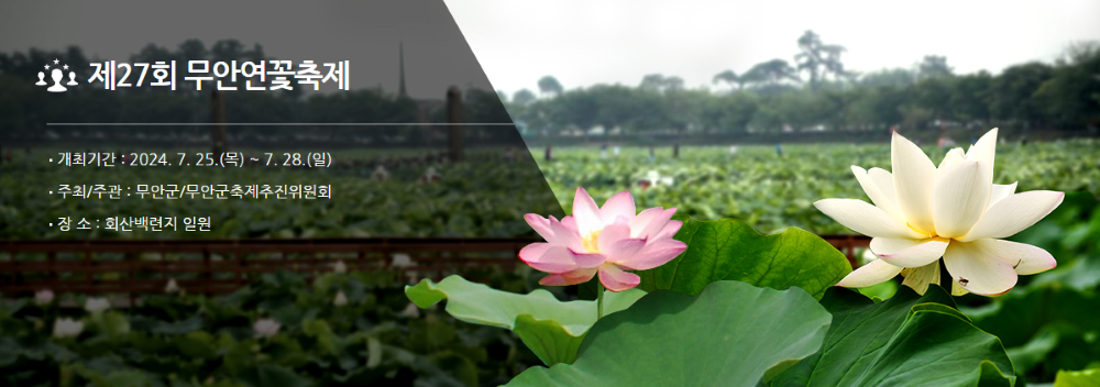 무안연꽃축제는 전라남도의 대표적인 여름축제로서, 단일 연꽃축제로는 전국 최대이다. 1997년 시작되었고, 매년 여름 일로읍 복용리 회산 백련지 일원에서 개최된다. 동양최대 10만평을 가득 채운 초록빛 연잎 사이로 고결함을 드러내듯 올곧이 하얀꽃망울을 틔우는 백련을 볼 수 있으며 자연의 한가운데서 다채로운 행사를 진행한다.