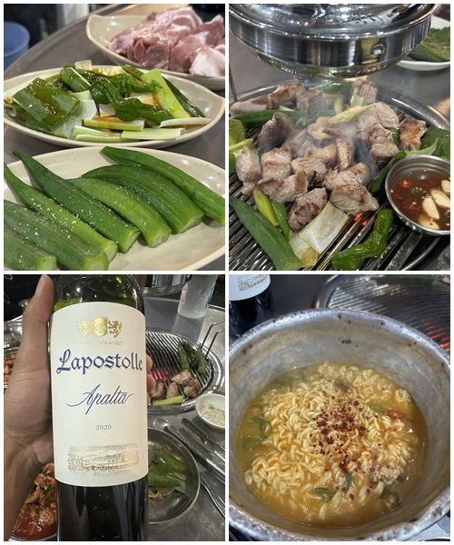 투뿔목살 X (3), 대파(1)+오크라(1), 된장라면(1)